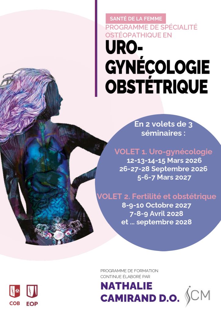Formation certifiante en 2 volets dédiée à la prise en charge ostéopathique de la santé de la femme.
